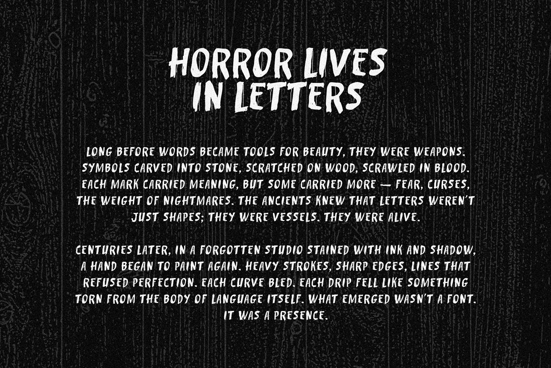 Bring your designs to life with Blood Beth, a terrifyingly bold horror brush font featuring raw hand-drawn strokes and creepy dripping details. Its rough, grunge-inspired texture creates an instant spooky, eerie, and gothic atmosphere, perfect for projects that demand a strong visual impact.