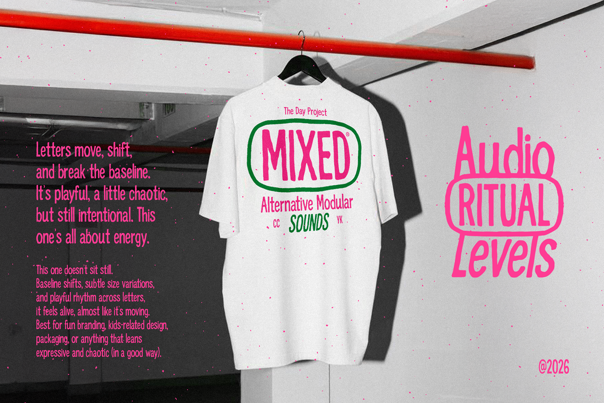 The proportions are slightly condensed but elastic. Some characters stretch, others compress, creating a natural inconsistency that makes words feel like they’re moving. It’s expressive without trying too hard. Loud, but not screaming. Confident in a way that doesn’t ask for approval.
